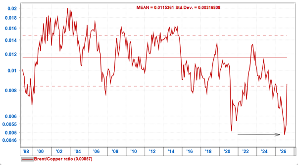 Chart 2: Oil/Copper ratio entered 2026 at unsustainably cheap levels