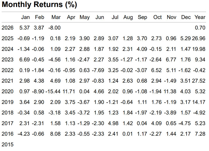 Source: Morningstar, March 2026