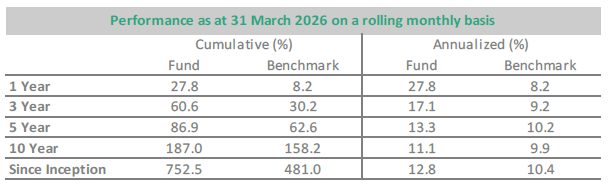 Launch dates: Balanced (01 October 2013), Equity (28 December 2015), Multi Asset Hedge (25 October 2007), Long Short Hedge (01 July 2008)Annualised performance since inception available on MDD’s found on website.*Annualised return is the weighted average compound growth rate over the period measuredIncome reinvested on ex-dividend date. The lowest and highest annualised performance numbers are based on 10 non-overlapping one-year periods or the number of non-overlapping one-year periods from inception where performance history does not exist for 10 years.